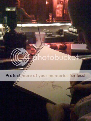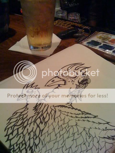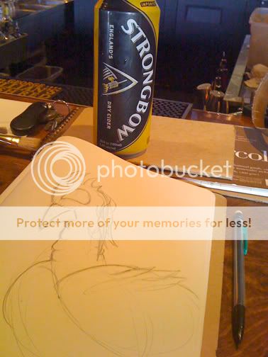 I always like to bring my sketch book with me while I have a drink or two or three at my usual bar, Boondock's. I placed a post up on FB to see if there were any other friends wanting to have a drink and share some sketch time. The following was the beginning to something a little sketchy.